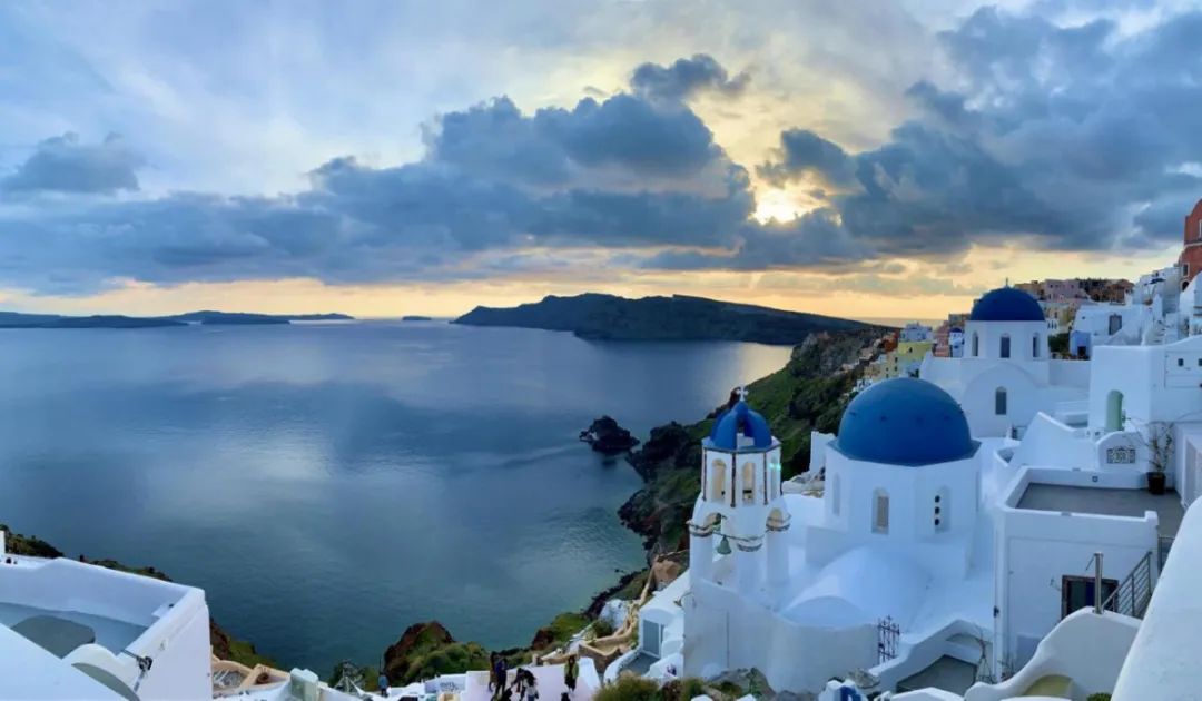 沒有誰能抵擋得住地中海溫暖的陽光和風(fēng)的柔情;也沒有誰能對抗得了愛琴海呢喃的愛語蜜意;更沒有誰想要去抓住圣托里尼島上徐徐流淌的光陰。為何能浪漫至此?因?yàn)檫@里是愛神“丘比特”的故鄉(xiāng),“柏拉圖式愛情”也孕育于這片土壤。在這里,如果愛情有顏色,那一定是藍(lán)白色,藍(lán)色與白色的擁吻,激發(fā)出圣托里尼島的旖旎風(fēng)光,藍(lán)得深邃,白得純粹。這里拿起手機(jī)你就能成為攝影師,是柏拉圖筆下的自由之地,是人們夢想中的度假勝地,它擁有最壯闊的海景,最美麗的日落余暉,最迷人的白墻藍(lán)頂教堂......我想,這就是人們向往的愜意生活,圣托里尼的浪漫將深深刻在心中。