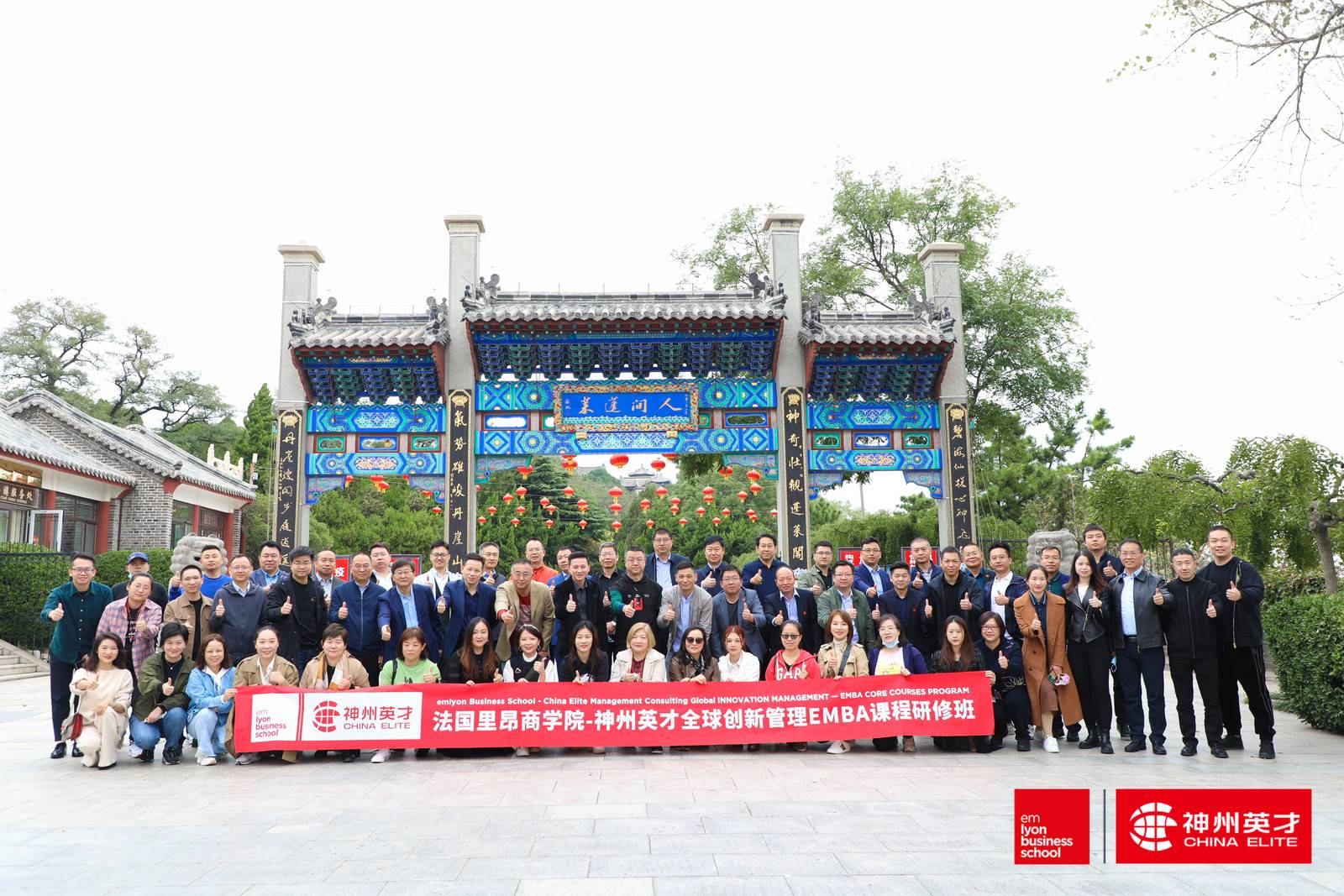 ▲法國(guó)里昂商學(xué)院-神州英才全球創(chuàng)新管理EMBA課程研修班學(xué)員合影
